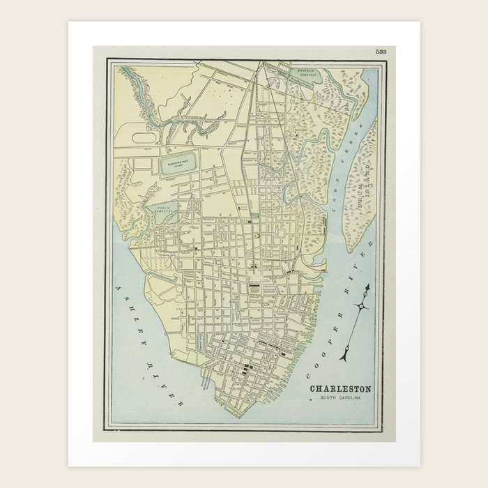 Vintage Map Of Charleston Sc 1901 Art Print By Bravuramedia Society6